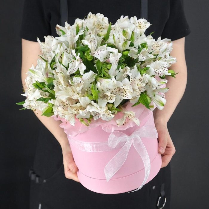 Большая коробка с белыми альстромериямм
