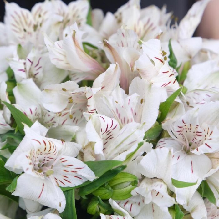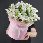 Альстромерия – 21 шт.Шляпная коробка – 1 шт.подкормка для срезанных цветов – 1 шт.инструкция по уходу за цветами – 1 шт.