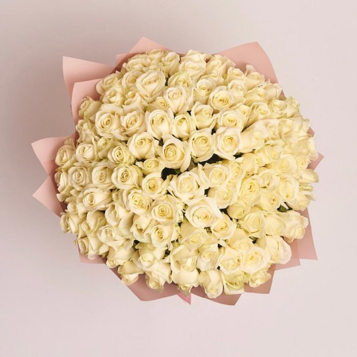 троянда біла – 101 шт. оформлення букета в упаковка – 1 шт.