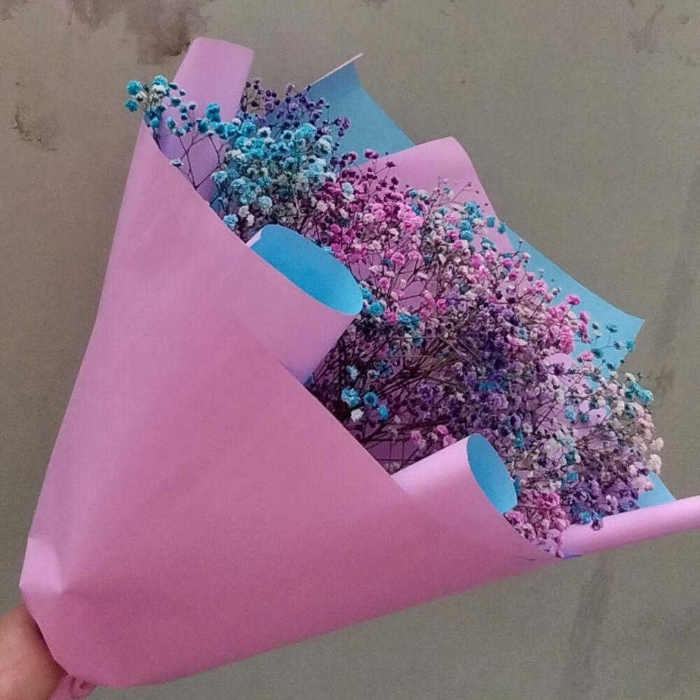 Лента – 1 шт.Упаковка дизайнерская – 7 шт.гипсофила радужная – 9 шт.