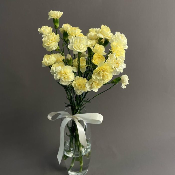 Лента атласная – 1 шт.Кустовая гвоздика – 9 шт.
