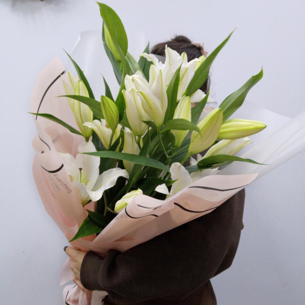 Упаковка дизайнерская – 2 шт.Лилия белая (голландия) – 5 шт.