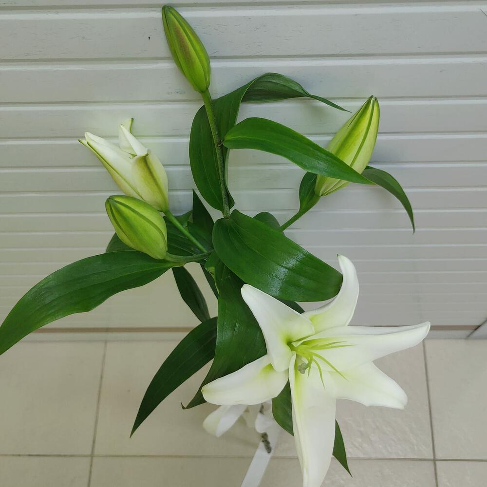 лилия ориентал белая – 1 шт.Лента атласная – 1 шт.