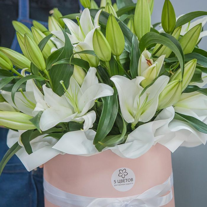 Букет из 11 белых лилий в шляпной коробке