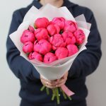 Лента атласная – 1 шт.Упаковка дизайнерская – 4 шт.Пион коралл шарм – 15 шт.