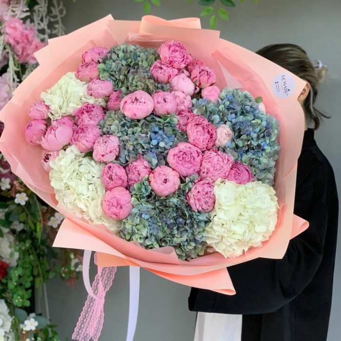 “Эвкалиптическая роскошь” гортензия и пионовидная кустовая роза