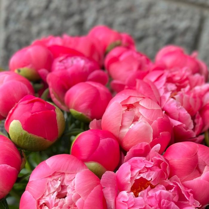 Пион коралл сансет – 21 шт.Лента атласная – 2 шт.