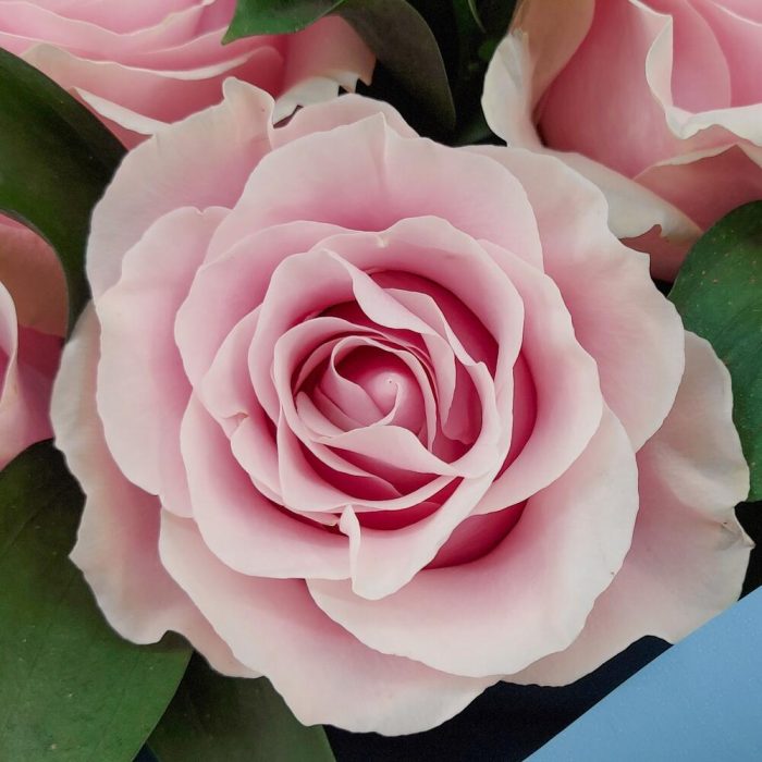 11 нежно-розовых роз с зеленью