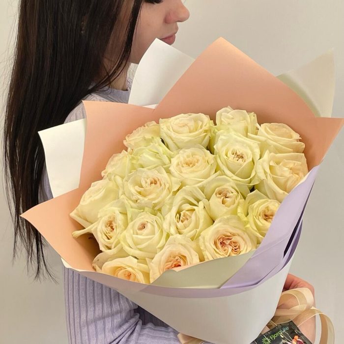 Оформление матовая пленка – 3 шт.роза вайт о хара( ароматная) – 19 шт.