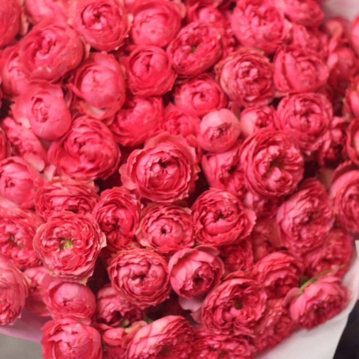 Роза кустовая пионовидная – 25 шт.Упаковка дизайнерская – 8 шт.Лента атласная – 1 шт.