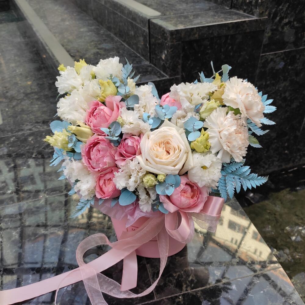 “В твоих глазах”: нежная шляпная коробка с французскими розами