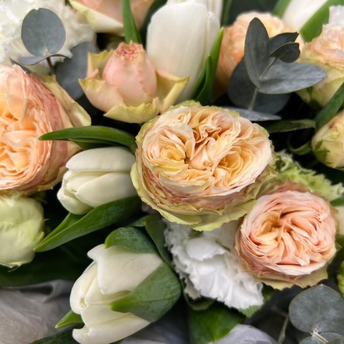 Категорий: Кустовые розы, Лизиантусы, Пионовидные розы, Розы, Тюльпаны