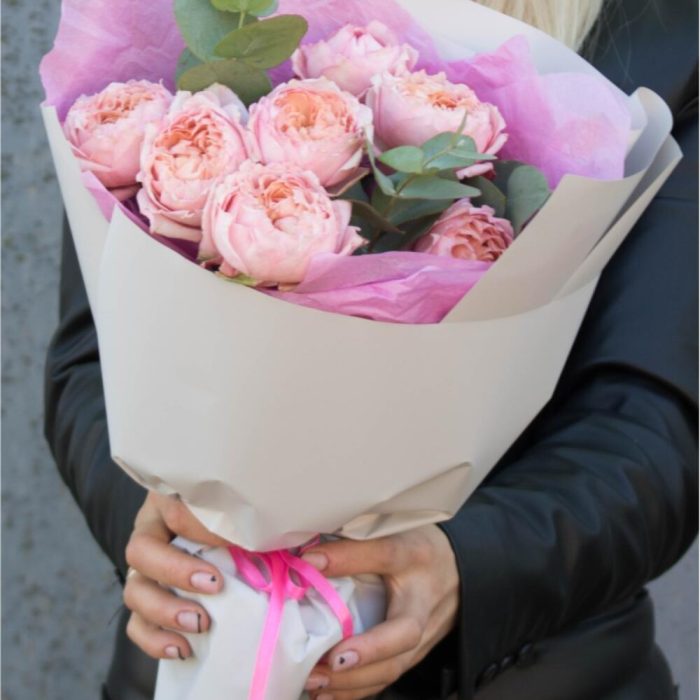 Эвкалипт – 2 шт. роза пионовидная кустовая джульетта – 3 шт.