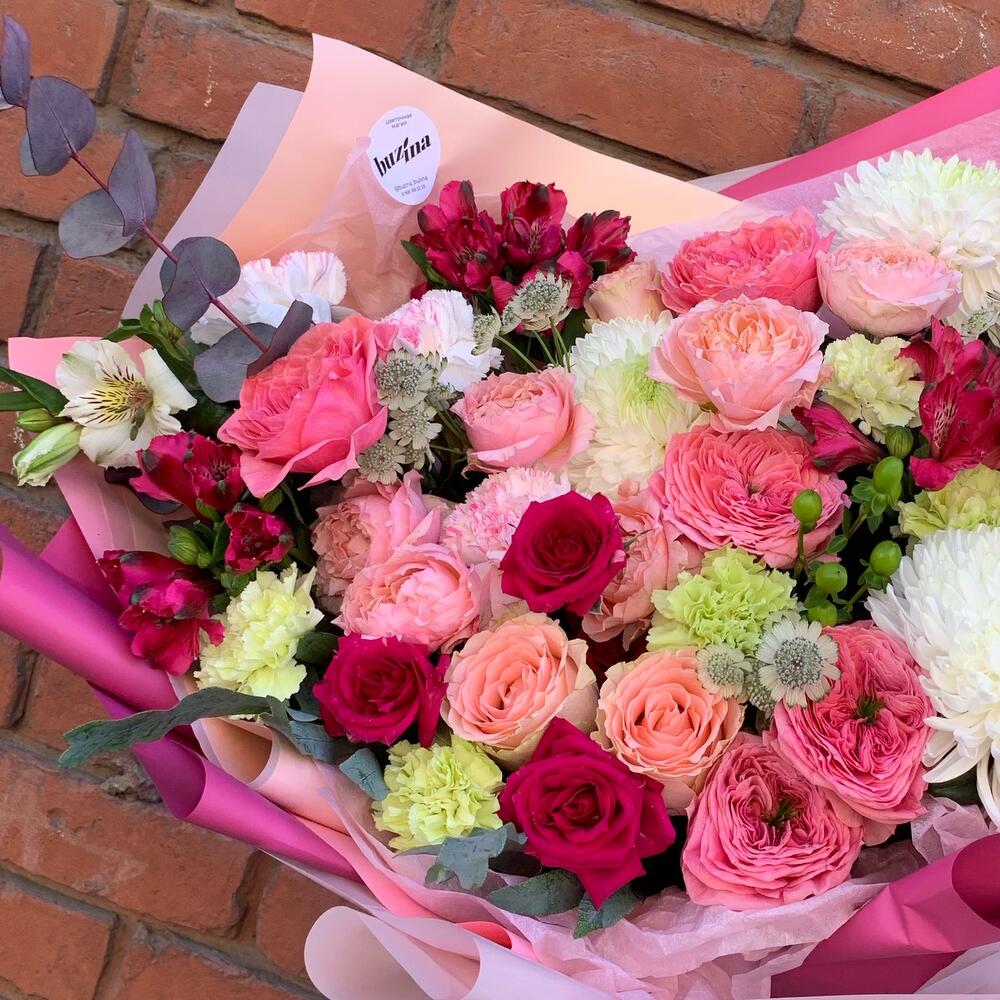 Категорий: Альстромерии, Гвоздики, Кустовые розы, Пионовидные розы, Розы, Хризантемы
