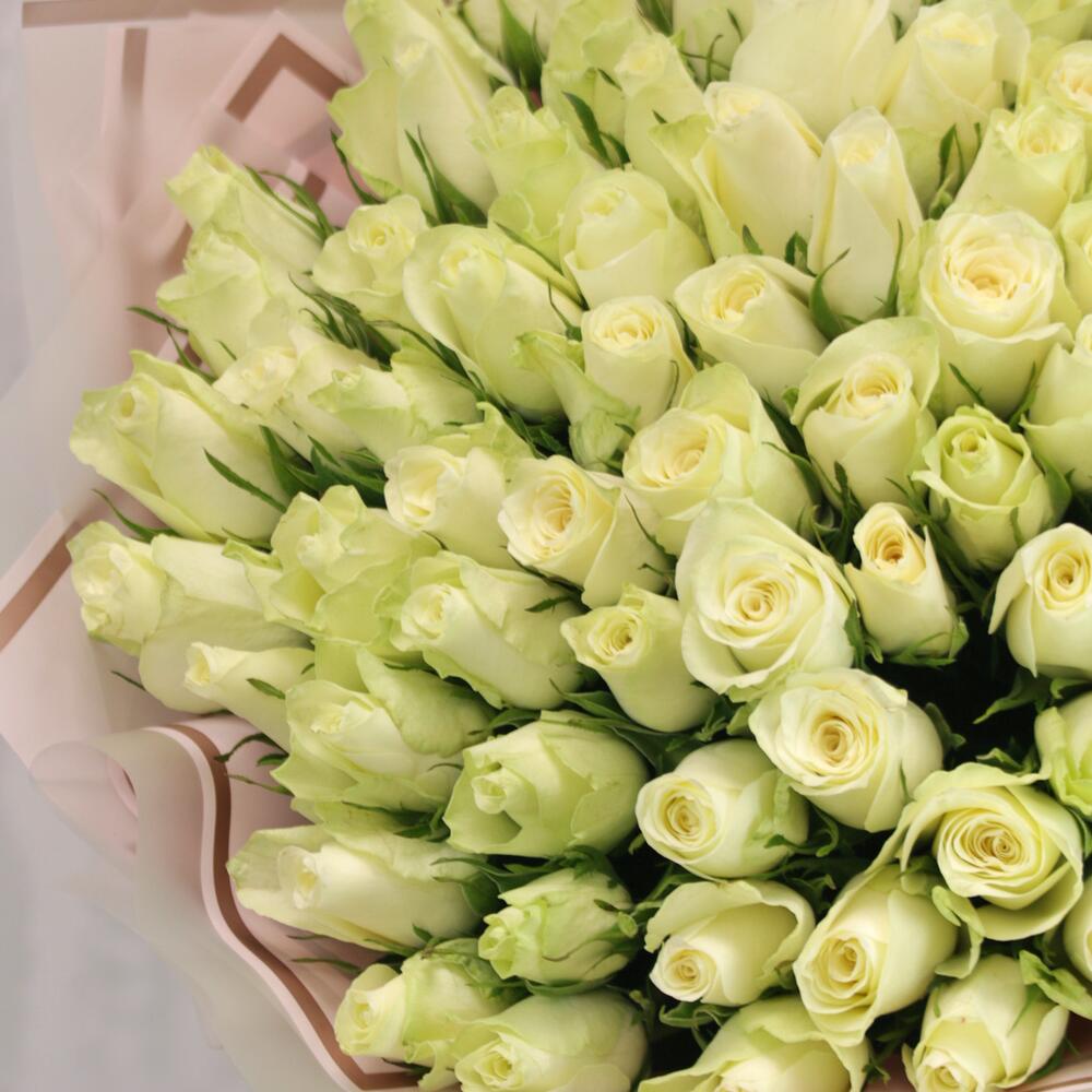Букет из 101 белой розы 35-40 см (Кения) в стильной упаковке