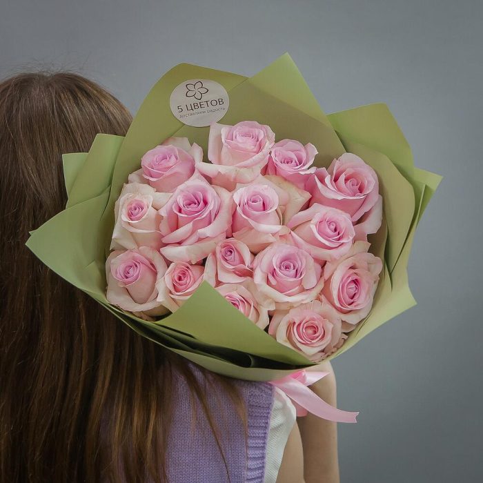 Букет из 15 розовых роз «Pink Mondial