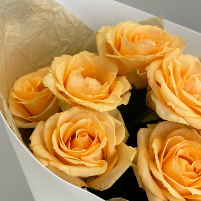 Букет из 7 персиковых роз в упаковке