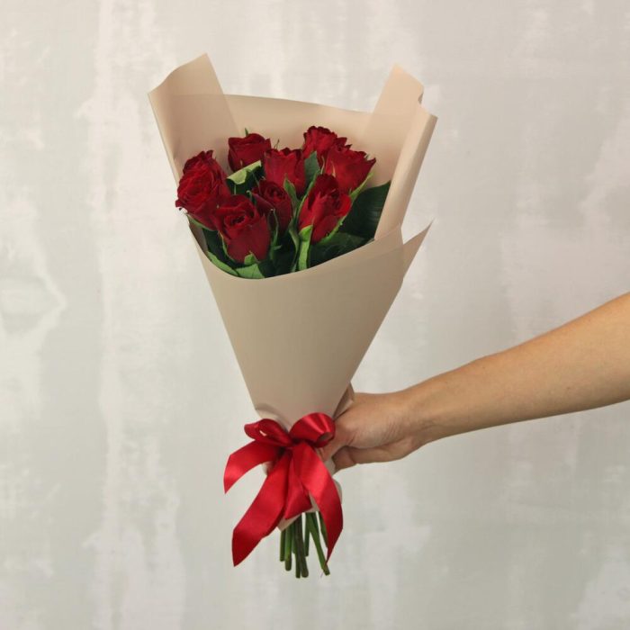 Букет из 9 красных роз в стильной упаковке