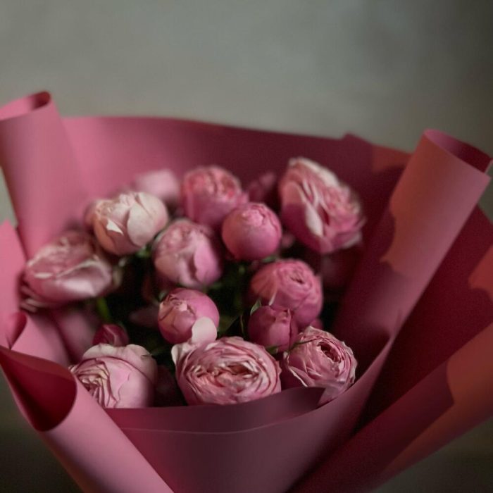 Букет из пионовидных ароматных роз и кустовых роз