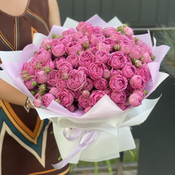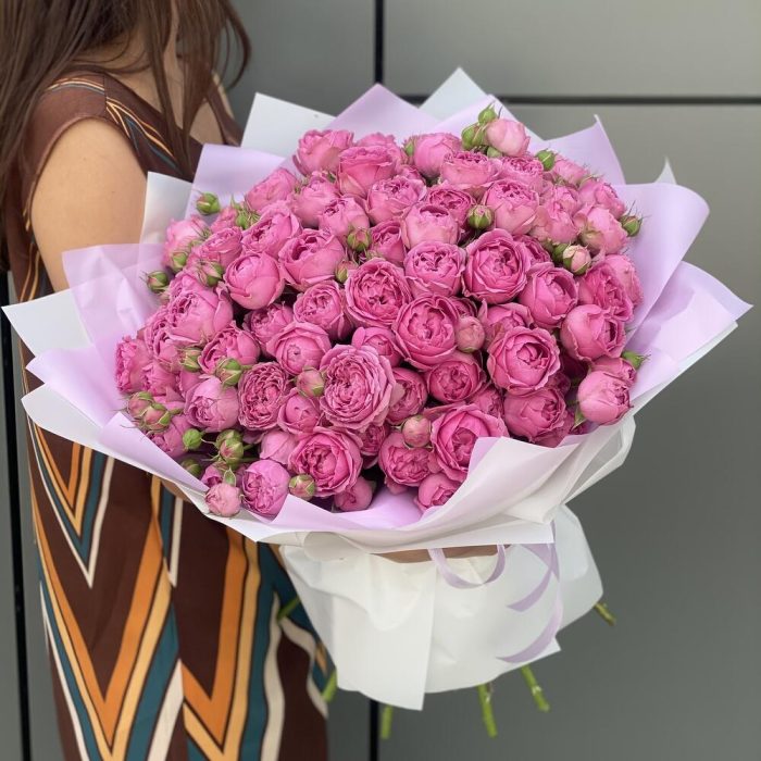 Букет из кустовых пионовидных роз в оформлении!