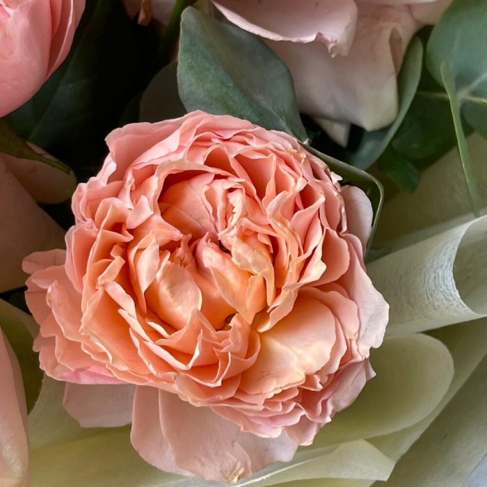 “Эвкалиптическая роскошь” гортензия и пионовидная кустовая роза