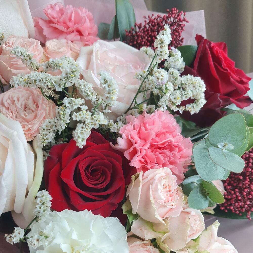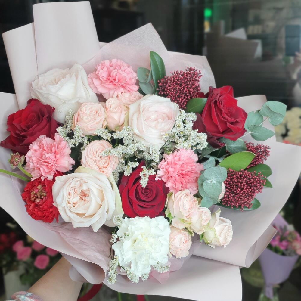 Категории: Гвоздики, Кустовые розы, Пионовидные розы, Розы