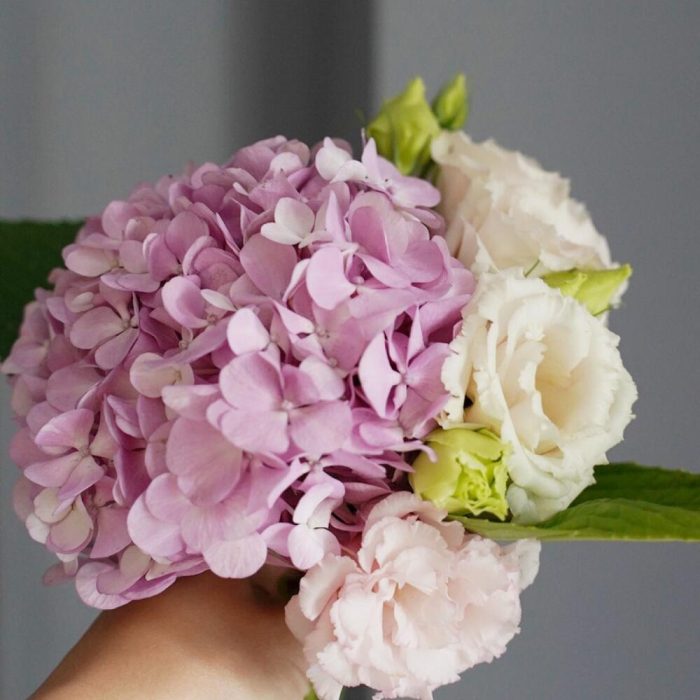 “Эвкалиптическая роскошь” гортензия и пионовидная кустовая роза