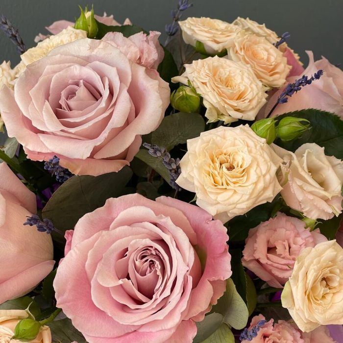 Цветочная композиция с нежными розами”Французский поцелуй”