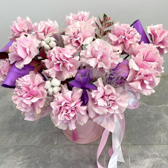 “Атлас☁️” – цветочная композиция с зефиром в деревянном ящике