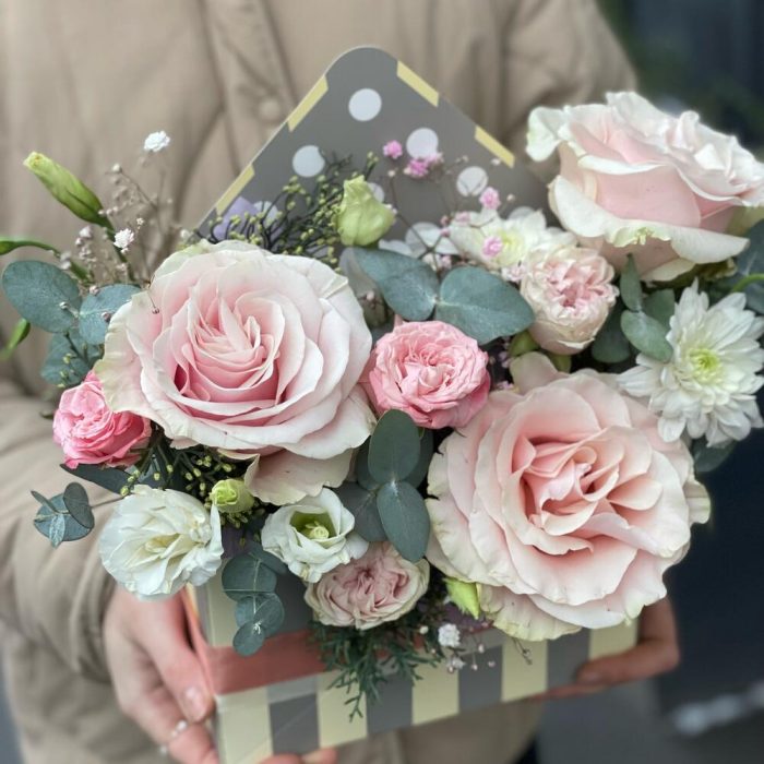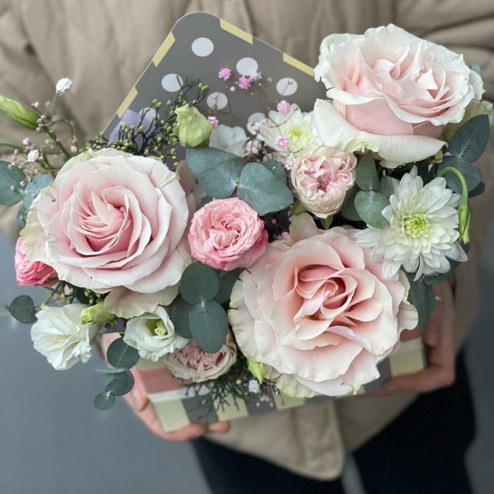 “В твоих глазах”: нежная шляпная коробка с французскими розами