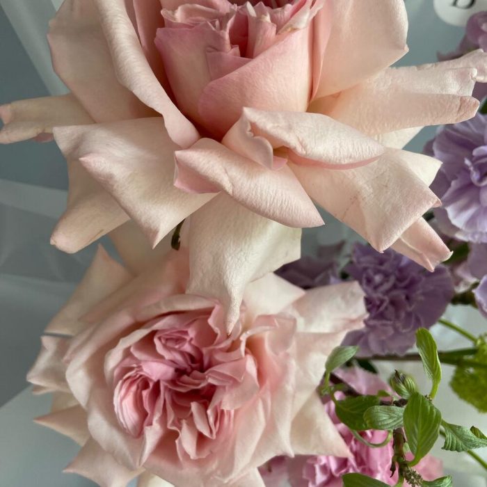 Pink O’Hara роза – 2 шт.Вибурнум – 1 шт.Диантус – 5 шт.Маттиола – 2 шт.Упаковка дизайнерская – 1 шт.Писташ – 2 шт.рекомендация по уходу – 1 шт.