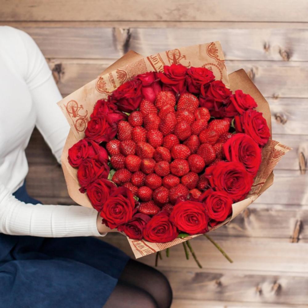 Клубничный букет с розами