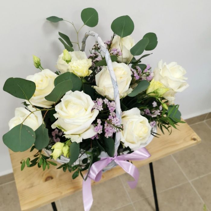 Альстромерии, Гвоздики, Кустовые розы, Лизиантусы, Розы, Хризантемы
