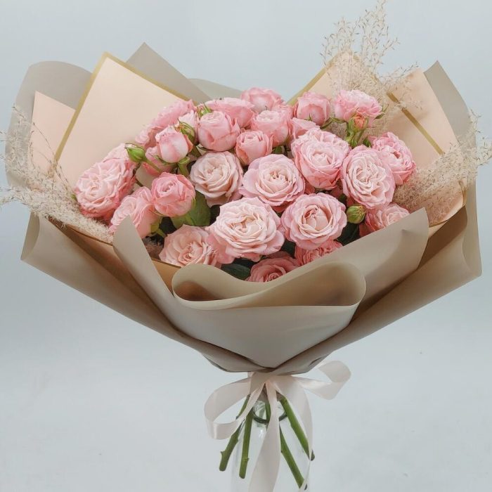 Нежнейшие, ажурные кустовые розы Бомбастик в стильном оформлении. Такой букет всегда уместен и подойдёт для любого повода: День Рождения, именины, годовщина свадьбы, рождение ребенка, 8 марта, День Святого Валентина, выпускной и т.д. Можно вручить маме, сестре, подруге, коллеге, учителю, любимой.