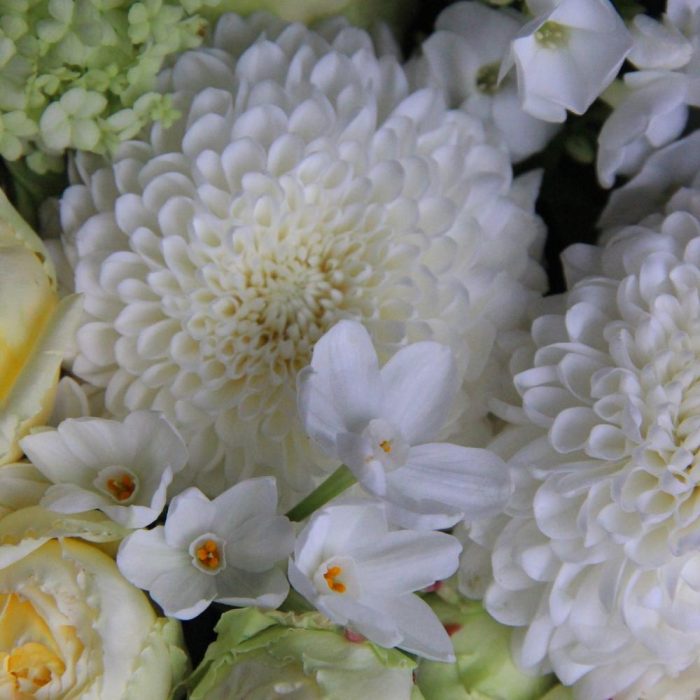 Роза пионовидная кустовая – 2 шт.Вибурнум – 2 шт.Ахиллея – 2 шт.Флокс – 2 шт.Эвкалипт – 5 шт.Тишью – 2 шт.Бумага – 2 шт.Лента атласная – 2 шт.Пион – 3 шт.