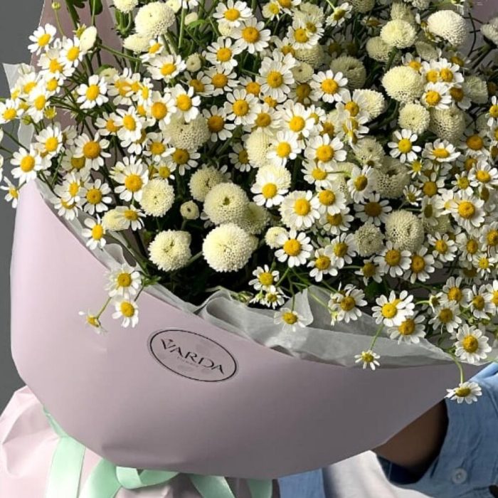 Флористы из студии “Varda Flowers” подобрали свежие и красивые цветы для создания букета, который наполнен положительными эмоциями и любовью. Они тщательно расположили каждый цветок в букете, учитывая его форму и цветовую гамму, чтобы достичь наилучшего гармоничного и красивого результата. Некоторые сезонные растения могут отсутствовать в букете, но флористы подберут похожие цветы без дополнительной оплаты.