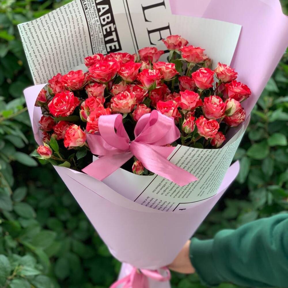 Монобукет кустовых мраморных роз