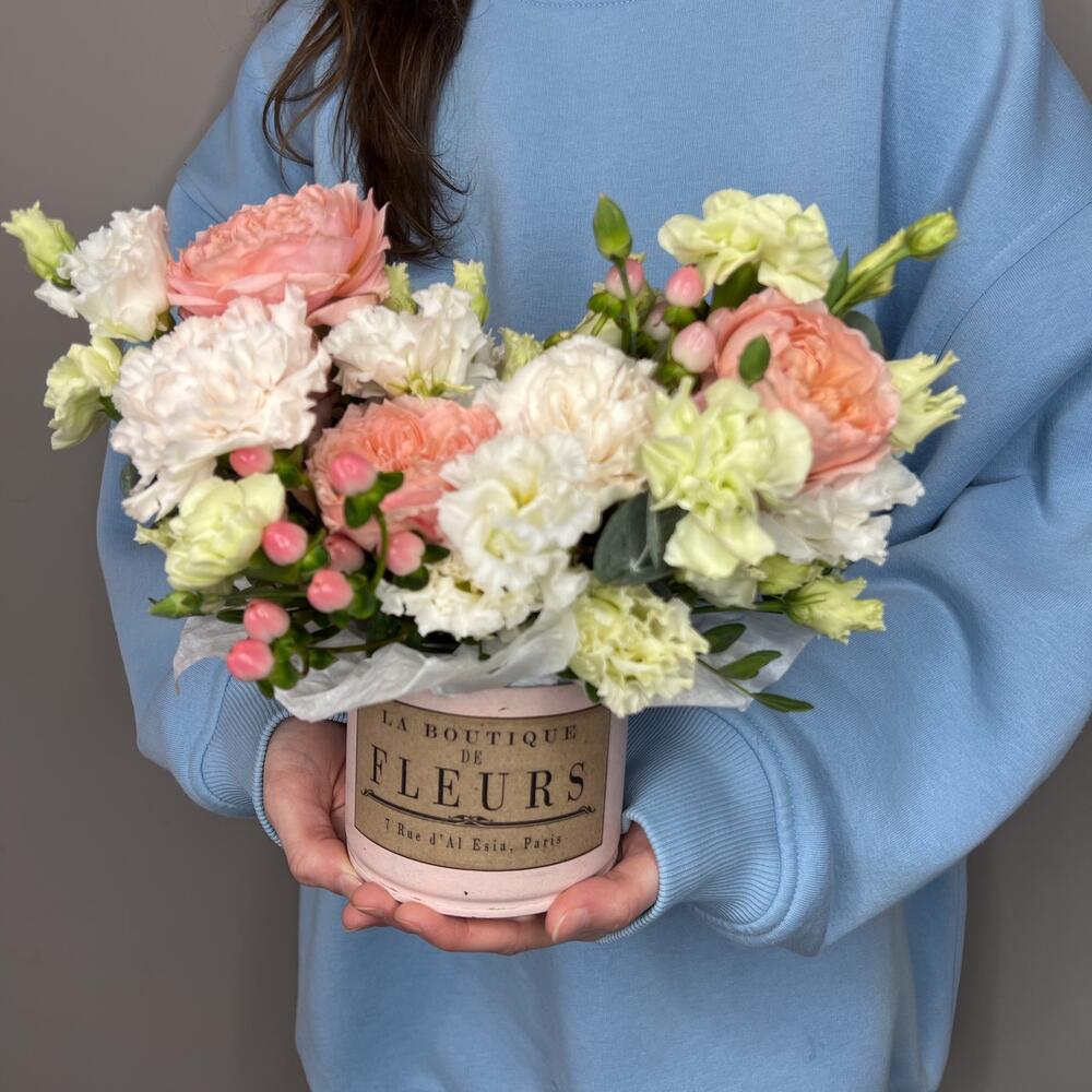 Нежная композиция в кашпо
