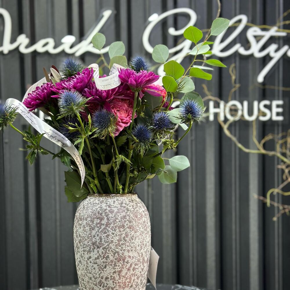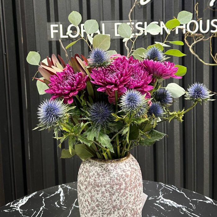 Категорий: Пионовидные розы, Розы, Хризантемы, Эвкалипт, Эрингиум