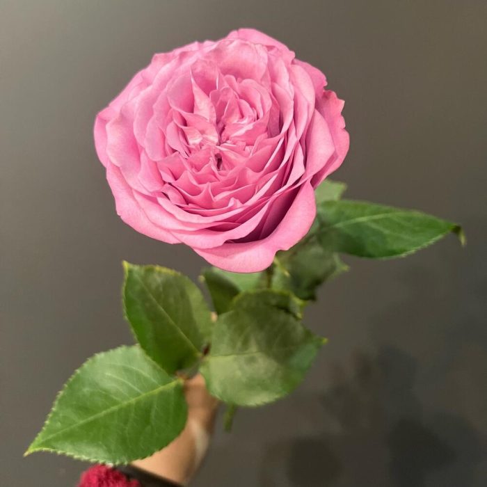 Пышная пионовидная роза отличается объемным бутоном, который как будто состоит из нескольких сотен лепестковПри раскрытии лепестки выкладываются как бы в три серединки. Цветок имеет выразительный лавандовый цвет с вкраплениями фиолетовых и сиреневых оттенков.