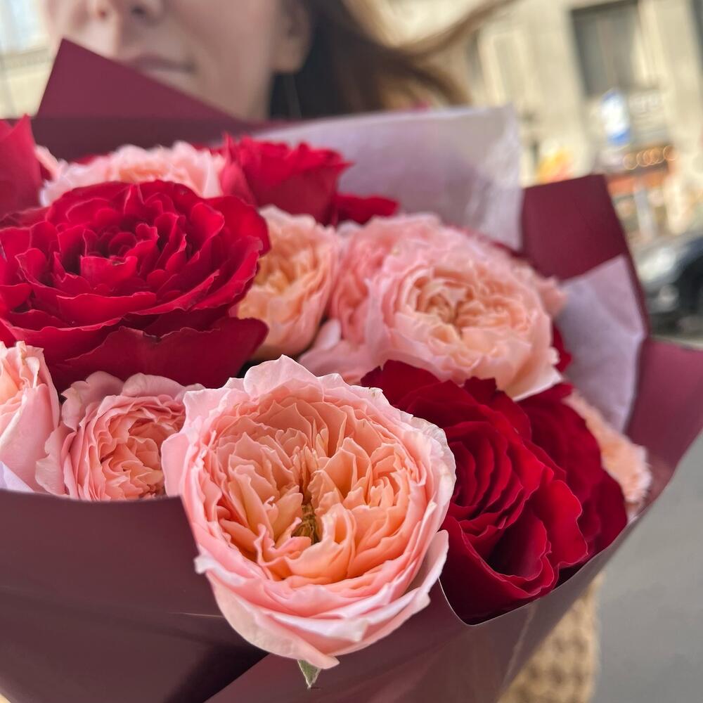 РУФЬ премиум монобукет из красных роз и пионовидной Джульетты