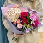 Гортензия – 1 шт.Тишью – 1 шт.Клематис – 2 шт.Пленка матовая – 1 шт.Диантус сортовой – 2 шт.Мадам бомбастик – 2 шт.Роза – 3 шт.