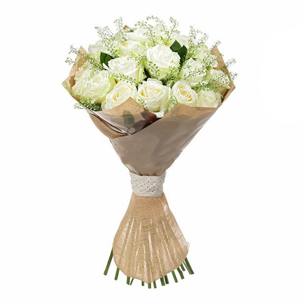 Лента атласная – 1 шт.бумага крафт – 1 шт.роза белый – 21 шт.