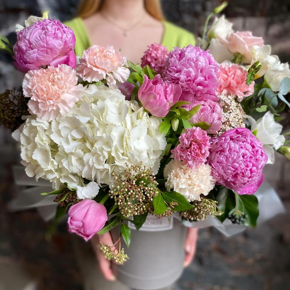 Гвоздики, Кустовые розы, Пионовидные розы, Розы