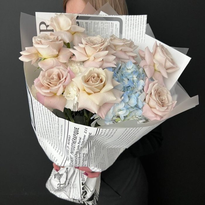 Гвоздики, Кустовые розы, Лизиантусы, Пионовидные розы, Розы