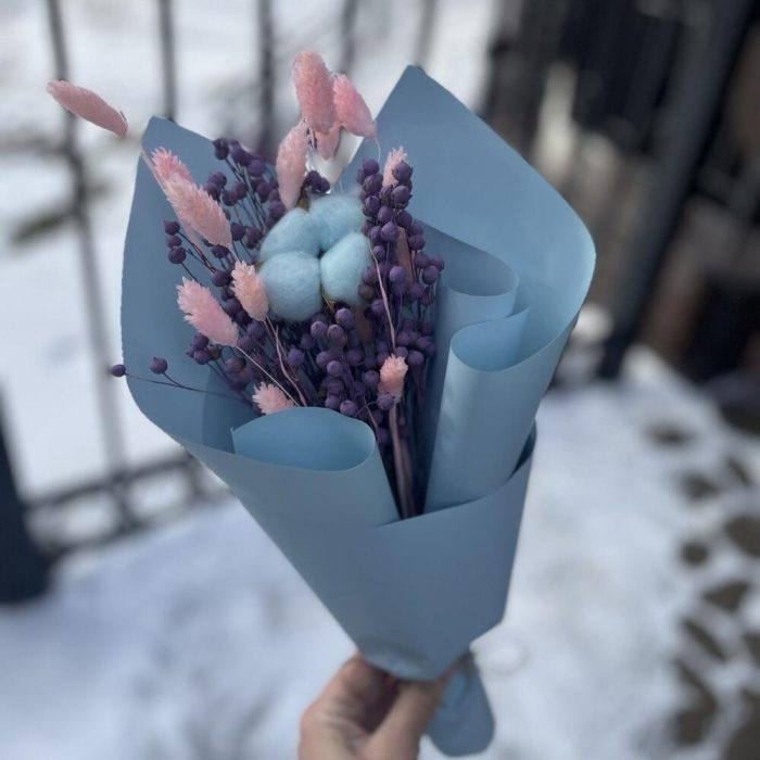 Хлопок натуральный – 1 шт.лëн сухоцвет – 25 шт.Фаларис – 12 шт.Упаковка дизайнерская – 3 шт.Лента атласная – 1 шт.