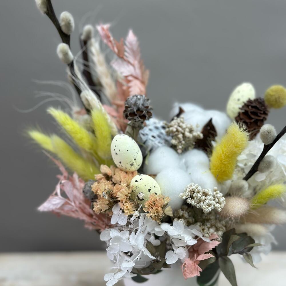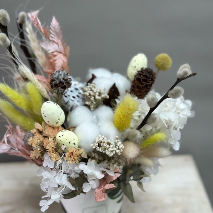 Корзина с белыми розами и эвкалиптом Эвкалиптовый лес